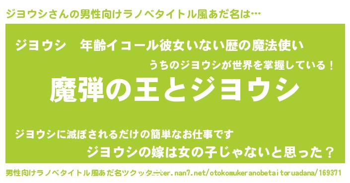 | 意味不明あだ名 | 『住所不定無職ジヨウシ(2歳)』 |