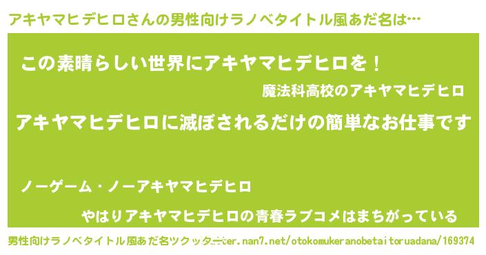 | 女子向けラノベタイトル風あだ名 | 『横柄アキヤマヒデヒロと宰相陛下』 |