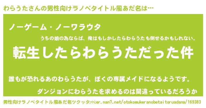 | 胡散臭い通販商品みたいなあだ名 | 『お金では代えられないイリジウム磁石…その名も「わらうた」』 |