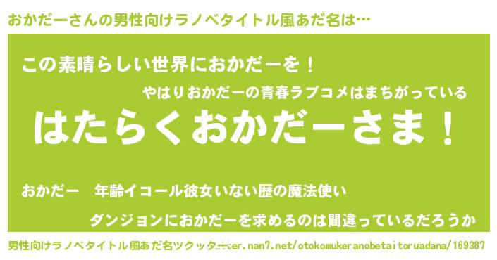 | 意味不明あだ名 | 『住所不定無職おかだー(65歳)』 |