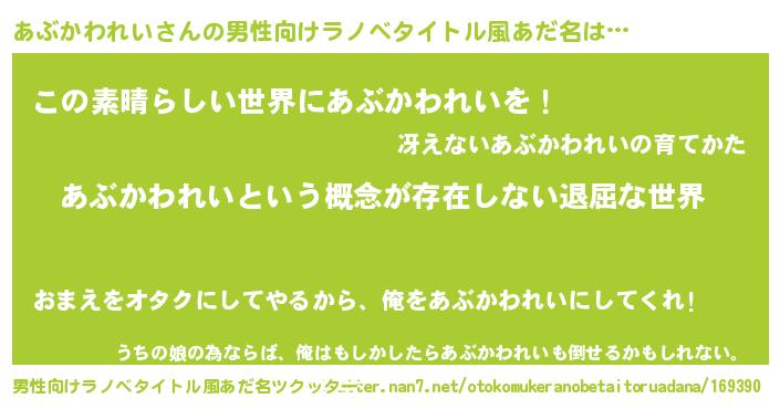 | 意味不明あだ名 | 『永久保存あぶかわれい』 |