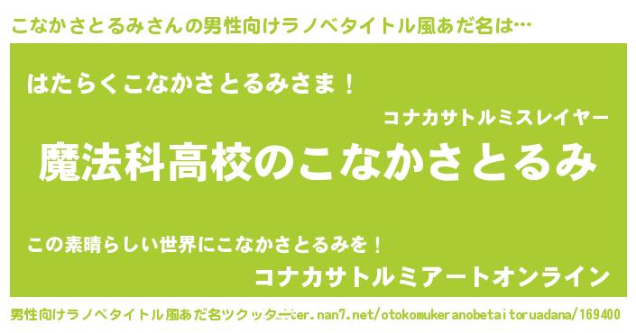 | 肩書あだ名 | 『こなかさとるみ総統』 |