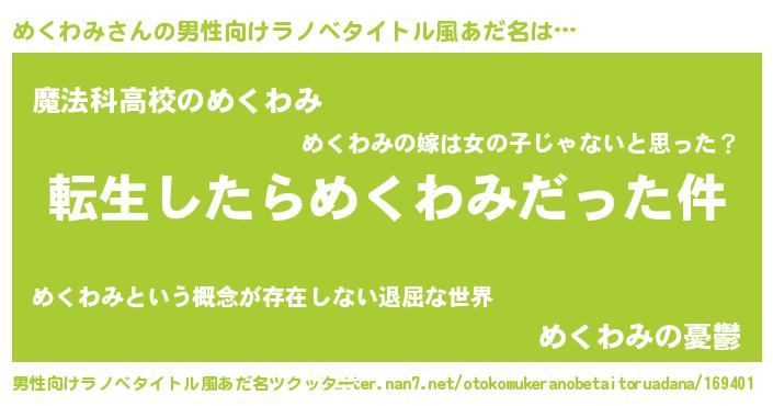 | 肩書あだ名 | 『めくわみ上級大将』『めくわみ総統』 |