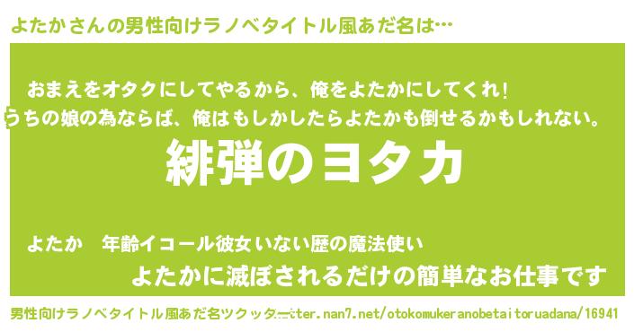 | 女子向けラノベタイトル風あだ名 | 『シンデレラよたか家の靴箱館』 |