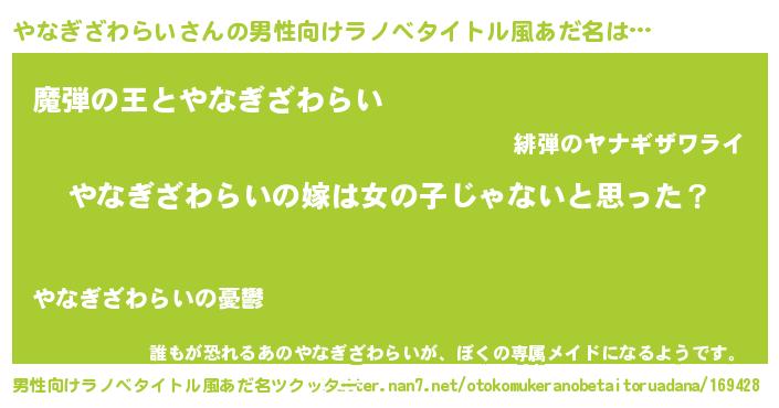 | 胡散臭い通販商品みたいなあだ名 | 『伝統あるサプリメント…その名も「やなぎざわらい」』 |