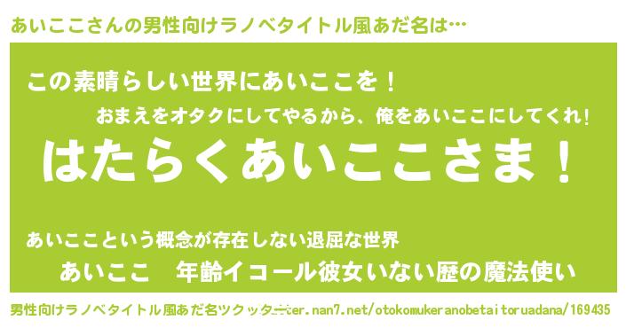 | 意味不明あだ名 | 『住所不定無職あいここ(95歳)』 |