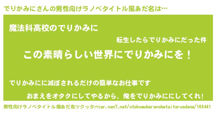 | 女子向けラノベタイトル風あだ名 | 『悪役でりかみにに転生したようですが、知った事ではありません』 |