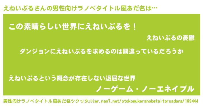 | 女子向けラノベタイトル風あだ名 | 『えねいぶるは平凡を望む』 |