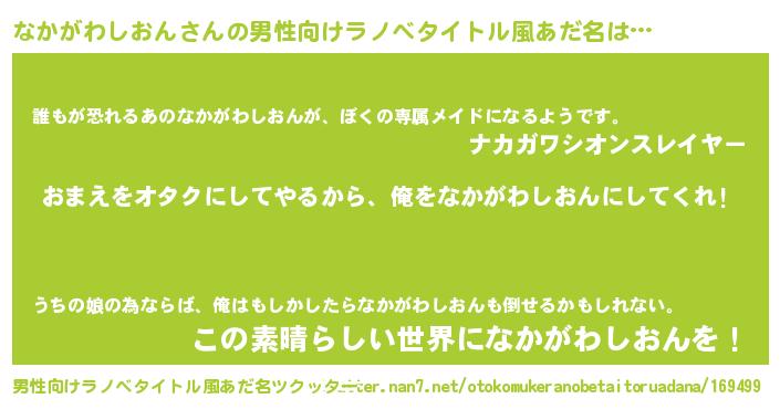 | ヘコむあだ名 | 『なかがわしおん(遠い目)』『酢こんぶ』 |