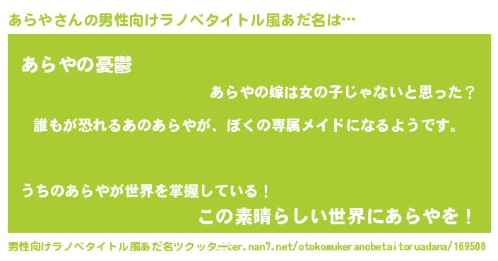 | 女子向けラノベタイトル風あだ名 | 『異世界でカフェあらやを開店しました。』 |