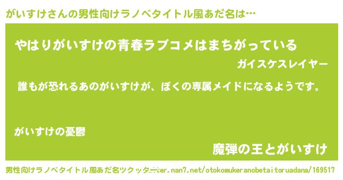 | ヒーロー風カッコイイあだ名 | 『ネオガイスケ』『ウルトラがいすけマン』 |