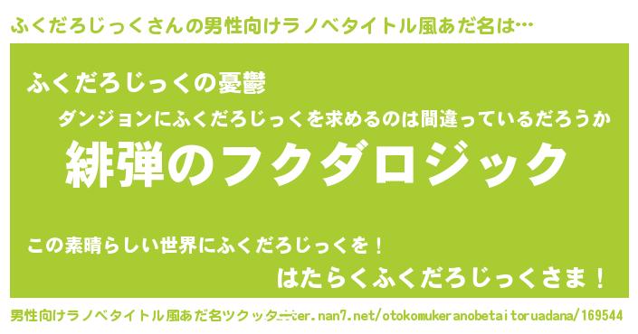 | 女子向けラノベタイトル風あだ名 | 『シンデレラふくだろじっく家の靴箱館』 |