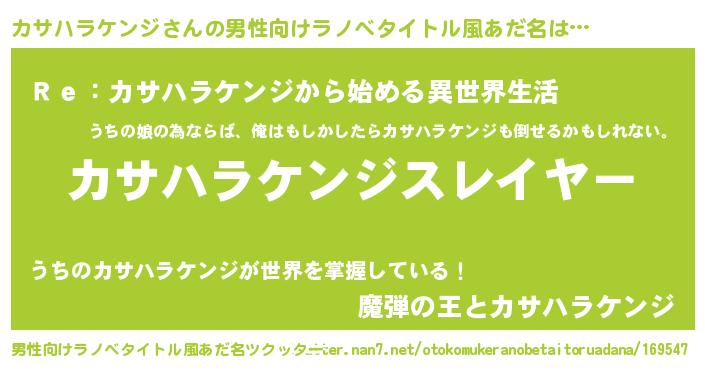 | 肩書あだ名 | 『カサハラケンジ大佐』 |
