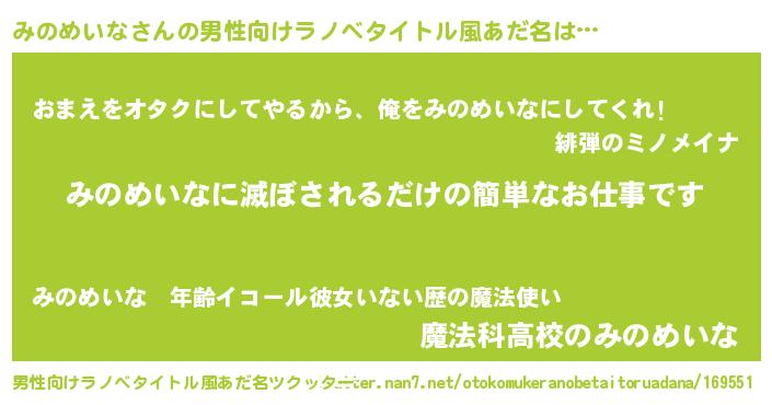 | ヒーロー風カッコイイあだ名 | 『慈愛の使者みのめいな』『仮面ミノダー』 |