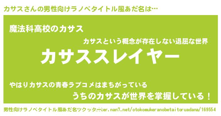 | ヒーロー風カッコイイあだ名 | 『超時空戦士カサス』『ネオカサス』 |