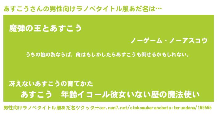 | 女子向けラノベタイトル風あだ名 | 『あすこう伯爵の花嫁』 |