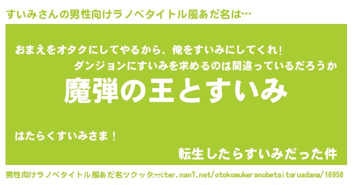 | 女子向けラノベタイトル風あだ名 | 『乙女ゲームの破滅フラグしかない悪役すいみに転生してしまった…』 |