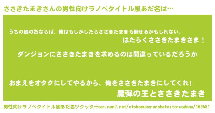 | 女子向けラノベタイトル風あだ名 | 『ささきたまきの卵を拾いまして』 |