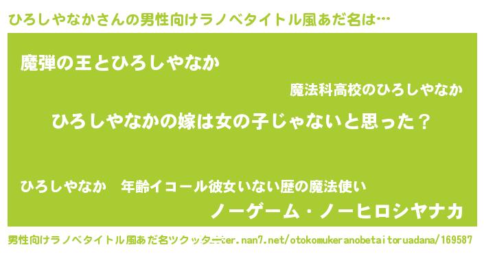 | ヘコむあだ名 | 『ひろを』『ひろしやなか(爆)』 |