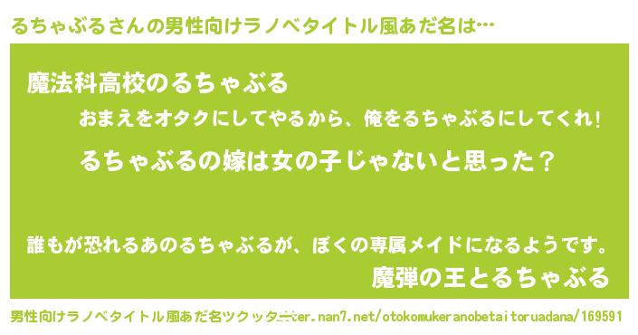 るちゃぶるさんの男性向けラノベタイトル風あだ名をツクッター!