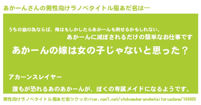 | 胡散臭い通販商品みたいなあだ名 | 『全米が絶賛したサプリメント…その名も「あかーん」』 |
