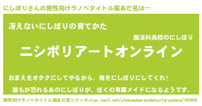 | 胡散臭い通販商品みたいなあだ名 | 『モテモテ間違いなし水晶球…その名も「にしぼり」』 |