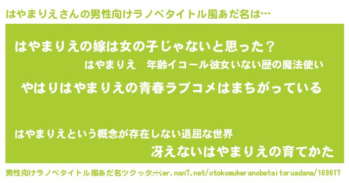 | 意味不明あだ名 | 『はやまりえフォーエバー』 |