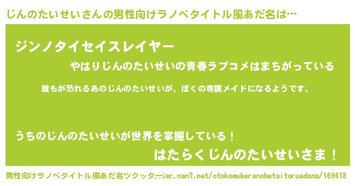 | ヘコむあだ名 | 『じんのたいせい(小並感)』『なまこ酢』 |