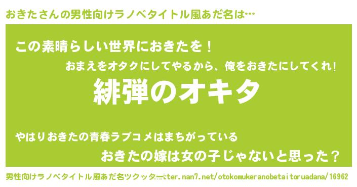 | ヒーロー風カッコイイあだ名 | 『仮面オキダー』『幻影騎士オキ』 |