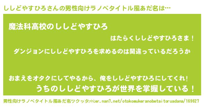 | 女子向けラノベタイトル風あだ名 | 『ししどやすひろの卵を拾いまして』 |