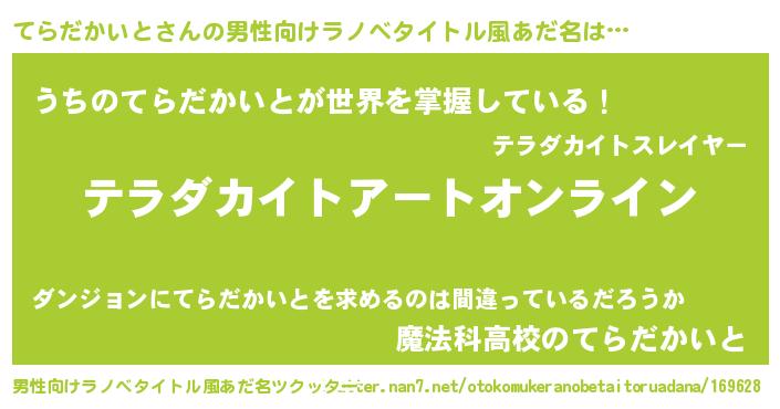 | 胡散臭い通販商品みたいなあだ名 | 『億万長者になれる霊験あらたかなお札…その名も「てらだかいと」』 |