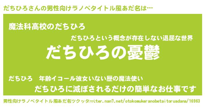 | ヘコむあだ名 | 『だちっふぃ~』『だちひろ(小並感)』 |