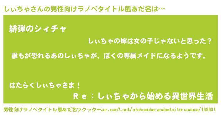 | 女子向けラノベタイトル風あだ名 | 『異世界でカフェしぃちゃを開店しました。』 |