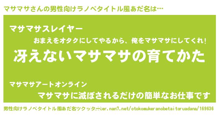 | 意味不明あだ名 | 『もやし科マサマサ属』『自称マサマサ』 |