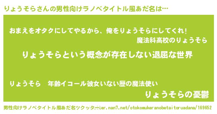 | 胡散臭い通販商品みたいなあだ名 | 『絶対に幸福をもたらす健康食品…その名も「りょうそら」』 |