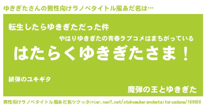 | ヒーロー風カッコイイあだ名 | 『仮面ユキダー』『ウルトラゆきぎたマン』 |