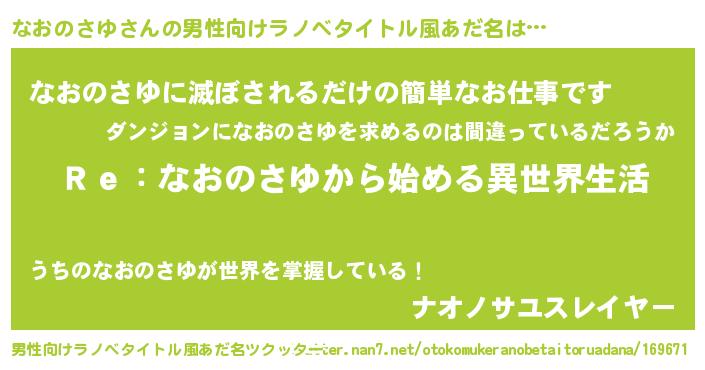 | ヒーロー風カッコイイあだ名 | 『最強戦士ナオノサユ』『幻影騎士ナオ』 |