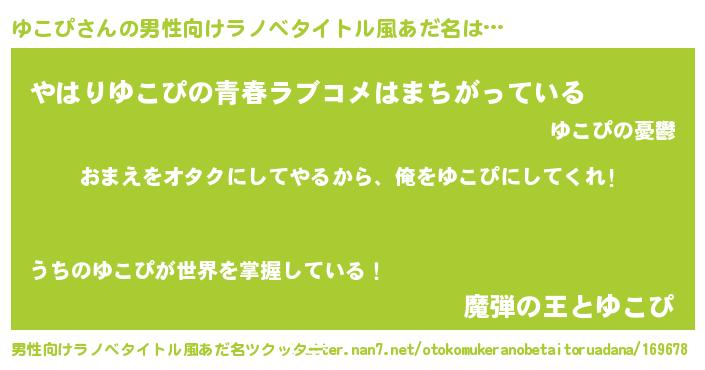 | ヒーロー風カッコイイあだ名 | 『正義の使者ゆこぴ』『仮面ユコダー』 |