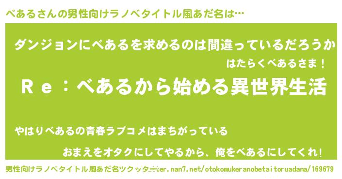 | 意味不明あだ名 | 『自称べある』『とにかく怪しいべある』 |