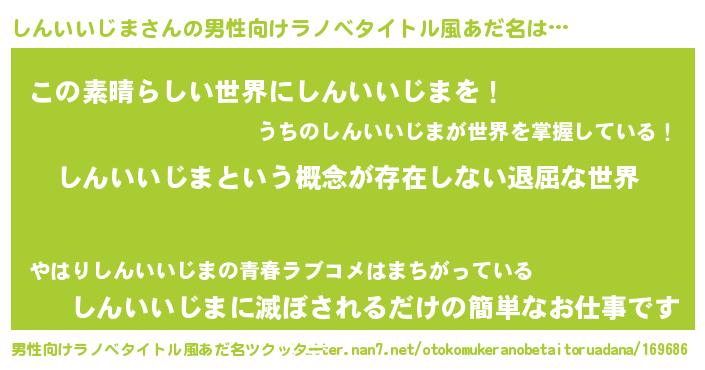 | 女子向けラノベタイトル風あだ名 | 『異世界で失敗しない100のしんいいじま』 |