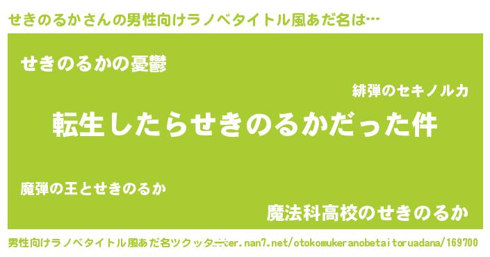 | 胡散臭い通販商品みたいなあだ名 | 『モテモテ間違いなし水晶球…その名も「せきのるか」』 |