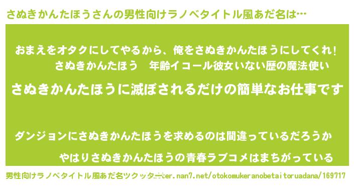 | ヒーロー風カッコイイあだ名 | 『慈愛の使者さぬきかんたほう』 |