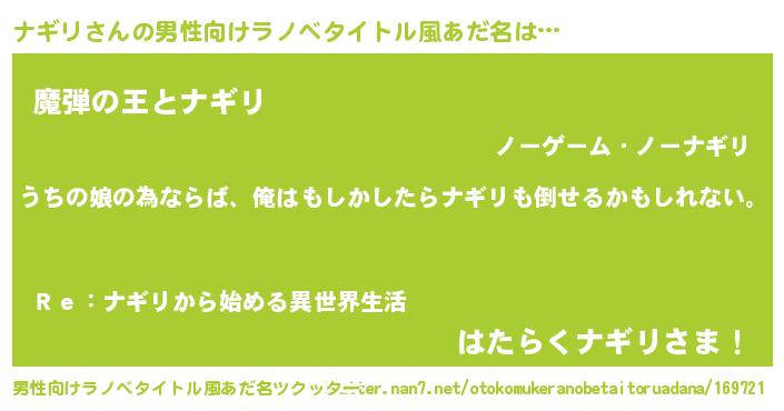| 意味不明あだ名 | 『ナギリフォーエバー』『自称ナギリ』 |