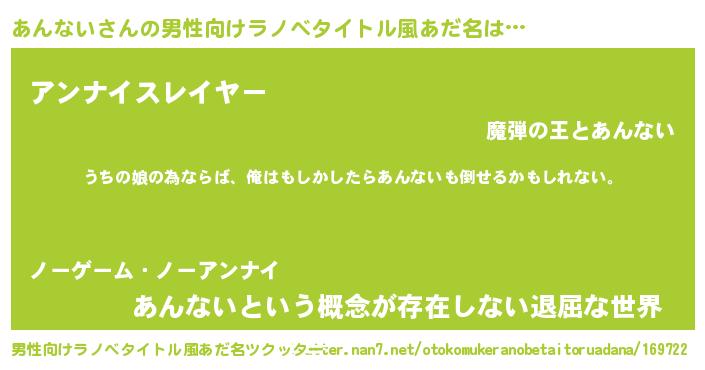 | 女子向けラノベタイトル風あだ名 | 『あんないの婚約者』 |