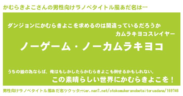 | 女子向けラノベタイトル風あだ名 | 『かむらきよこ恋絵巻』 |
