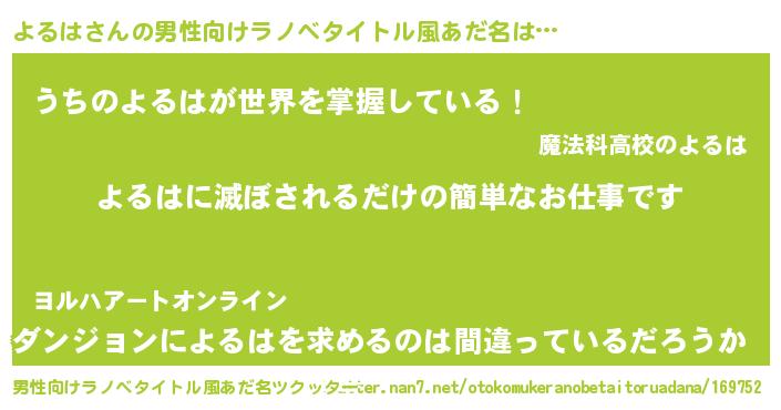 | 欧米人風あだ名 | 『アンジェラ・よるは』『ウサインよるは』 |