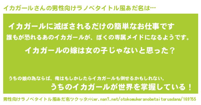 | 女子向けラノベタイトル風あだ名 | 『イカガール様がみてる』 |