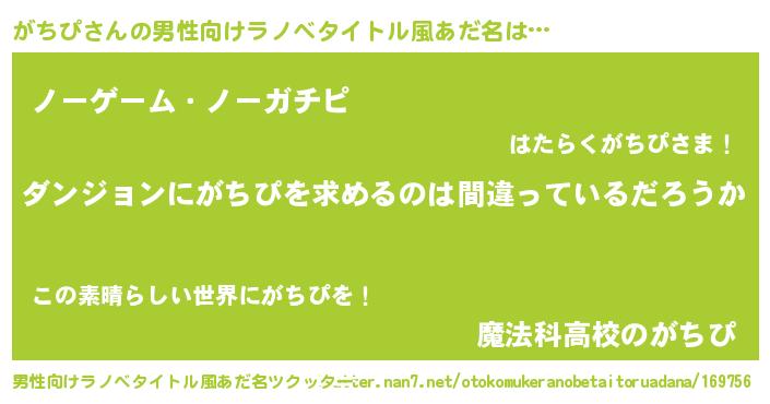 | 意味不明あだ名 | 『とにかく怪しいがちぴ』『自称がちぴ』 |