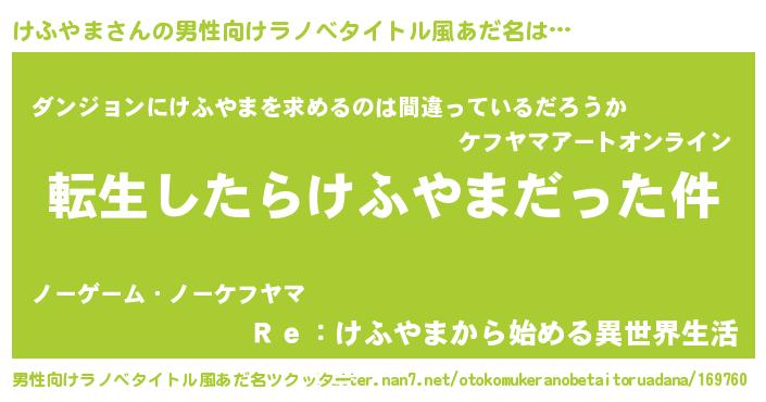 | 女子向けラノベタイトル風あだ名 | 『けふやまの玉の輿計画!』 |
