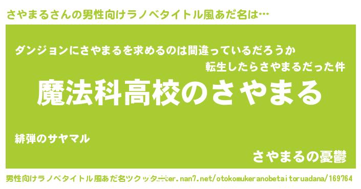 | ヒーロー風カッコイイあだ名 | 『サイバー戦士サヤマル』『黄金騎士サヤ』 |